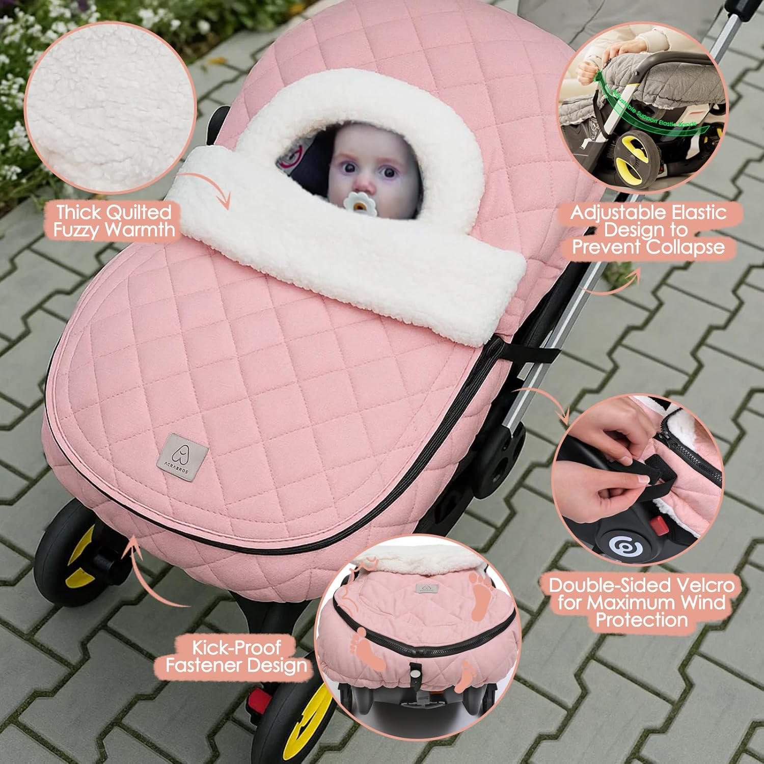 Funda de asiento para coche de bebé con ventana y cremallera: protección térmica impermeable, ideal para mantener al recién nacido cálido y cómodo en climas fríos.